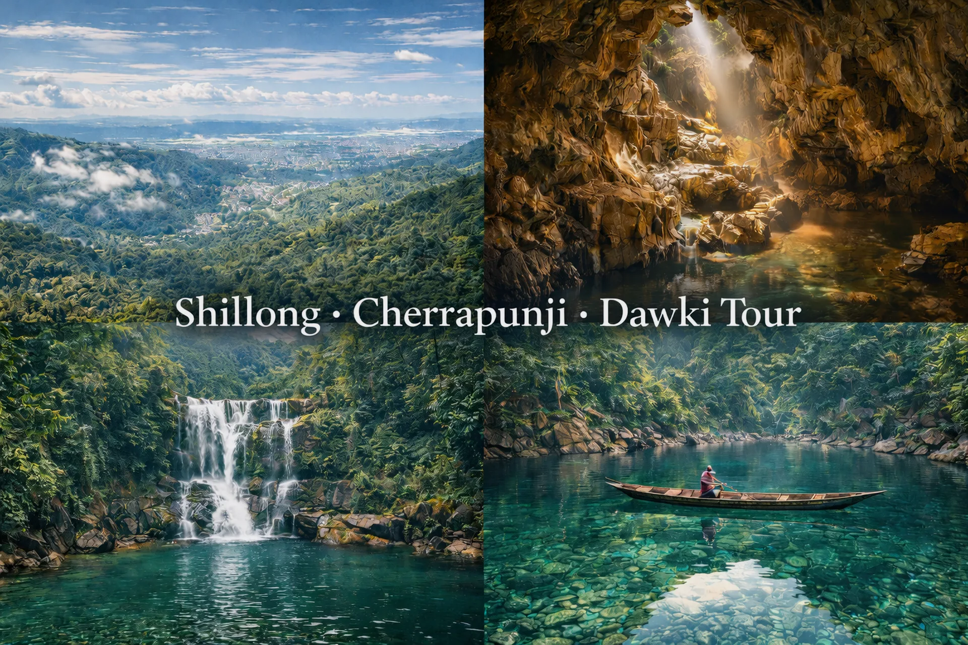 The Shillong Cherrapunji Dawki tour is a classic Meghalaya sightseeing itinerary designed for first-time visitors to the region. Covering the most popular destinations in the state, the tour includes hill town experiences in Shillong, waterfalls and viewpoints around Cherrapunji, and a visit to Dawki's crystal-clear Umngot River. The itinerary is paced comfortably, allowing travelers to enjoy Meghalaya's natural beauty without long or rushed travel days. This tour is ideal for travelers looking for a well-rounded introduction to Meghalaya's landscapes, culture and scenic highlights.